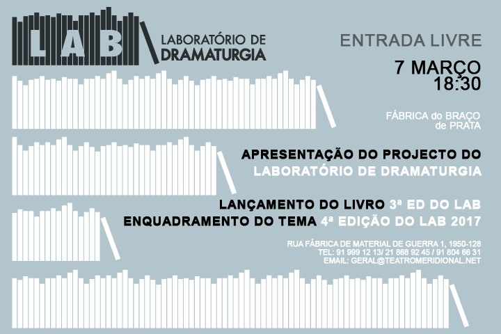 Laboratório de Dramaturgia, projecto concebido pelo Teatro Meridional em colaboração com o Centro de Estudos de Teatro da Faculdade de Letras da Universidade de Lisboa, é uma iniciativa que se desenvolve desde 2012 e pretende incentivar a criação de textos inéditos em língua portuguesa, associando escritores a um painel de artistas e académicos num trabalho conjunto que acompanha a escrita de um texto.